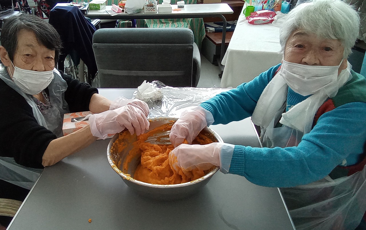 ご利用中の女性陣の手もお借りし、たくさんのかぼちゃ団子が完成しましたよ♪