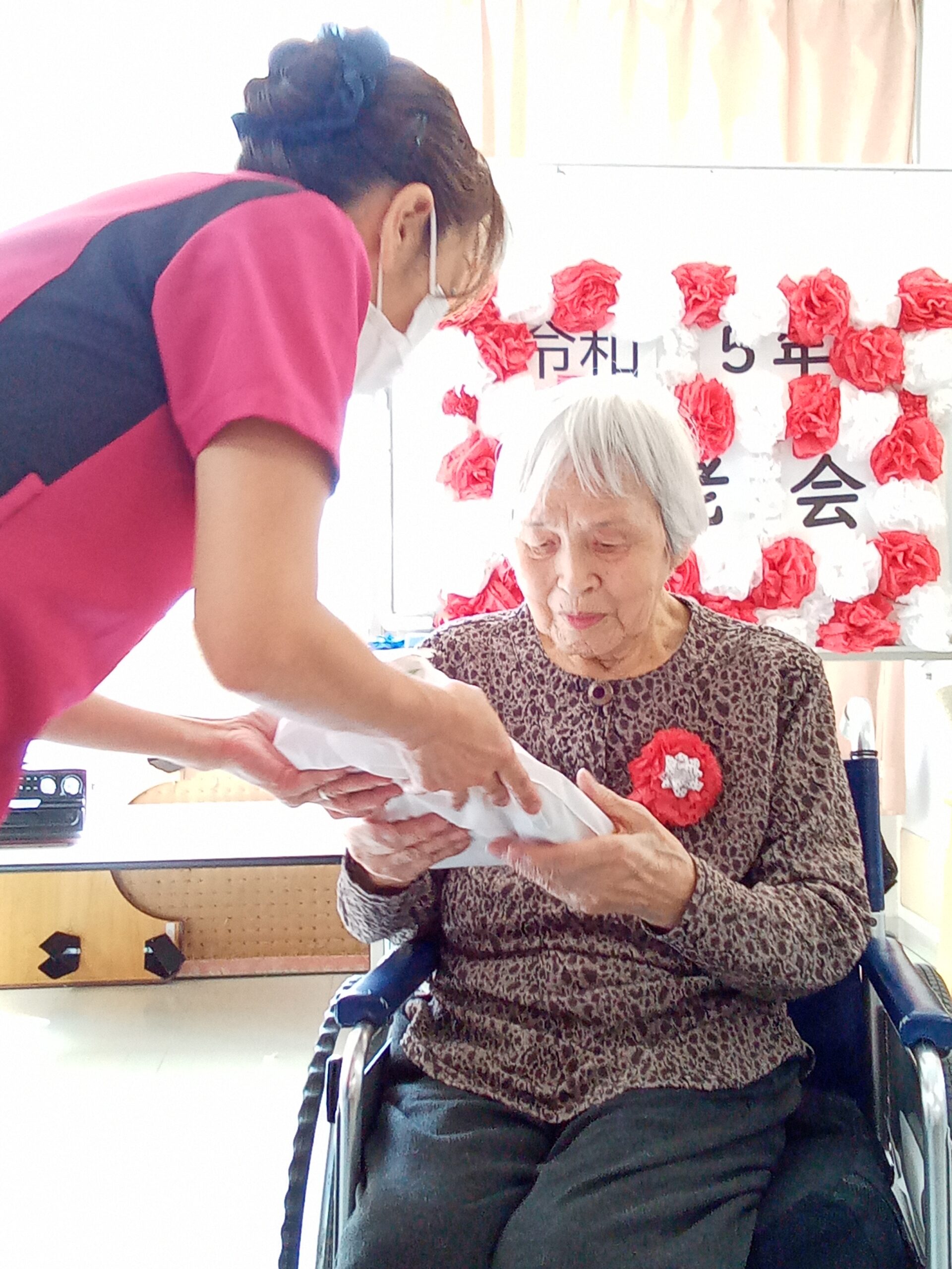 賀の祝いの方々には、ご家族様からいただいたメッセージをスタッフが代読。涙を流され喜ばれる方もいました😢