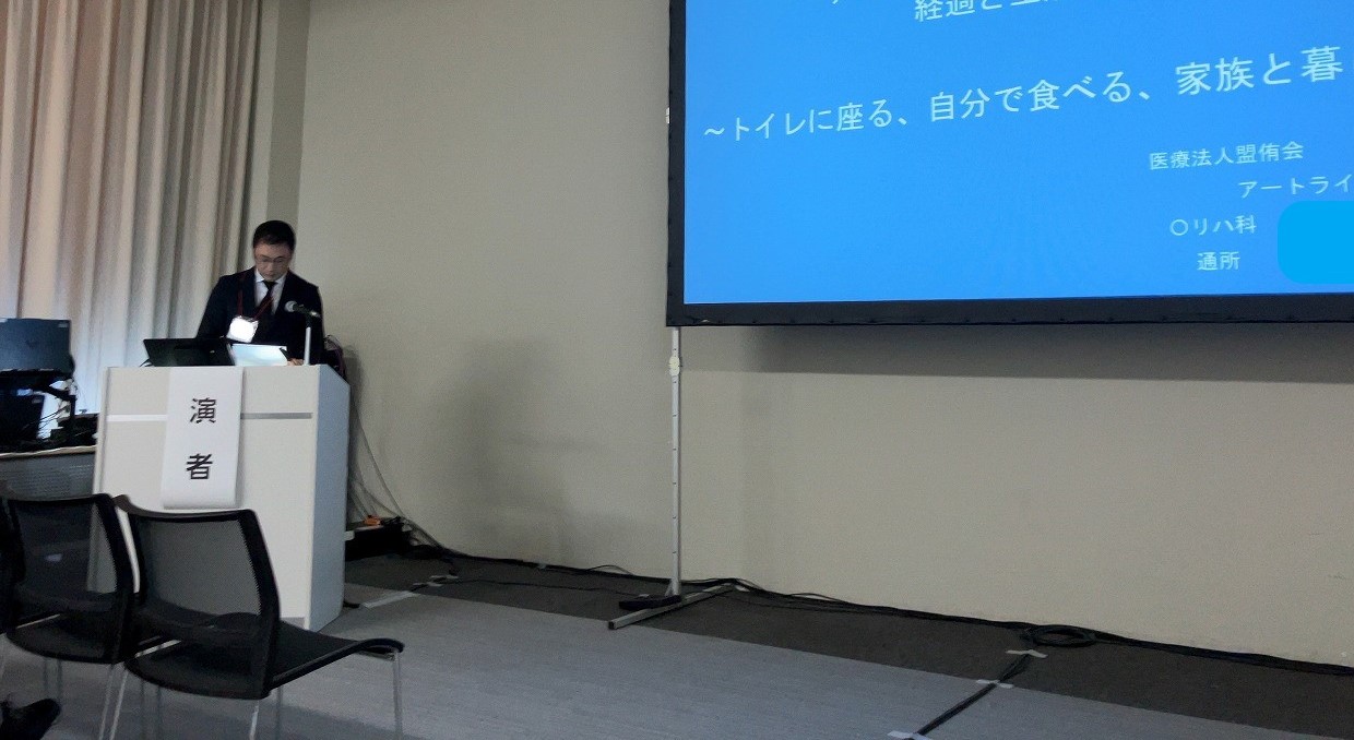 また、当施設からは特定疾患の利用者様の経過と生活支援を題材に、理学療法士が発表してまいりました。この事例を通して、今後の老健では様々な疾患に対し情報共有を行い、出来得る限り向き合う姿勢で取り組める施設でありたいと伝えてくれました。また、発表を聞いた他施設の施設長からもご質問を頂き今回の取組にいたく共感を頂いたようでした。