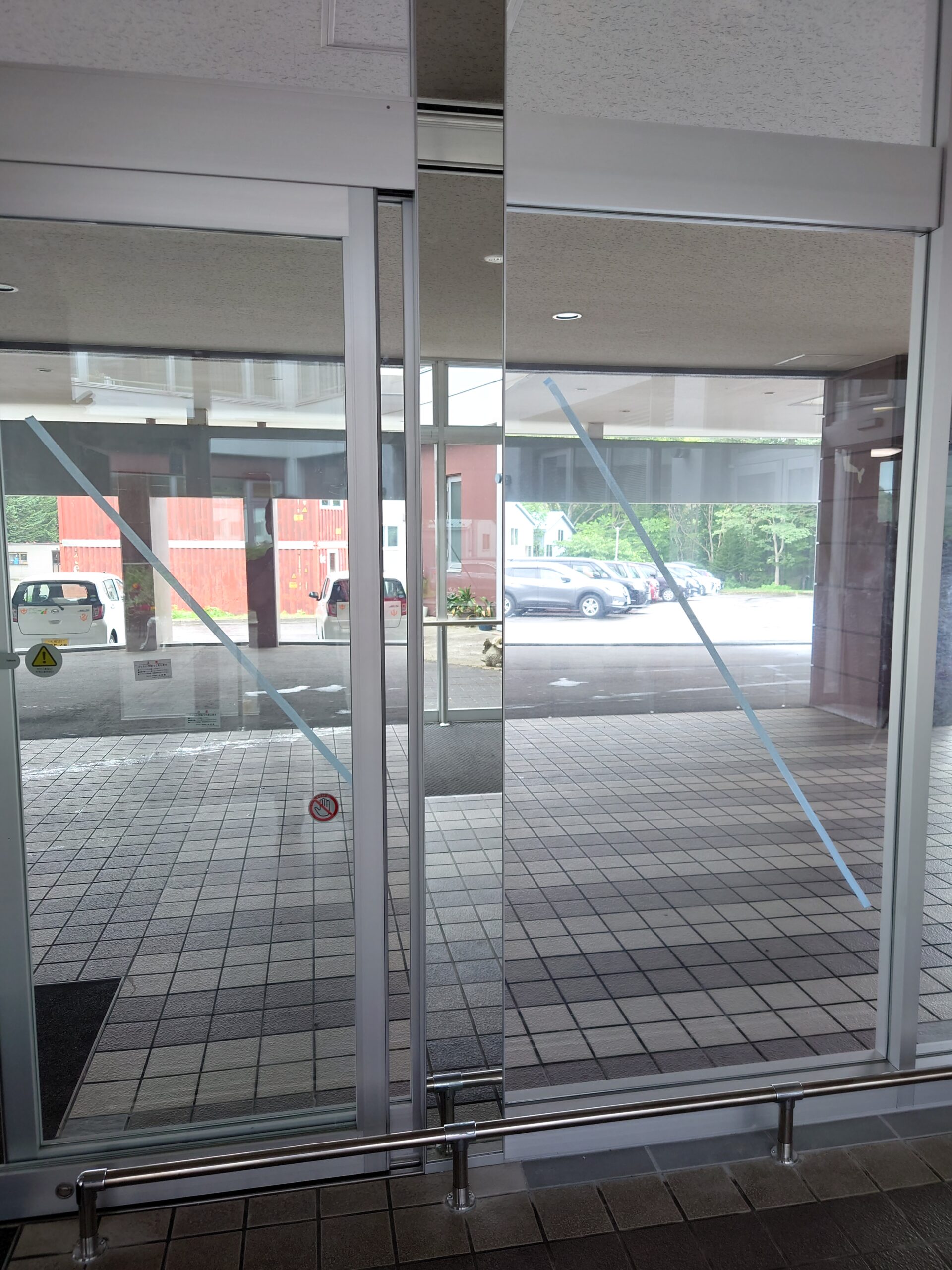 こんなに違うものなんだなあーと関心してしまいました。まあ約28年も使用したものと比較してもですけどね(笑)。そして今回大きく変わったところは内側の自動ドア(事務室側、通所リハビリ側)の2箇所で、開口部を約30センチ広げ大きくしたところです。