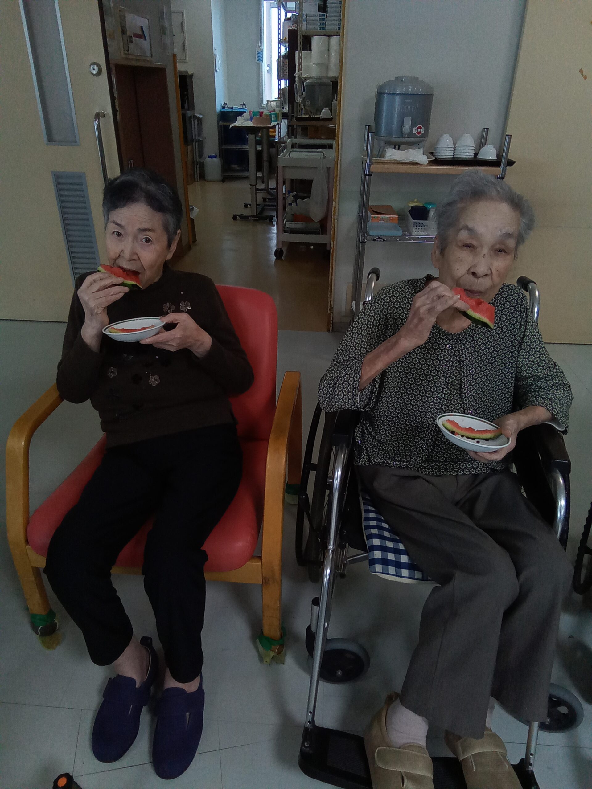 スイカ割の後は、フロアの皆さん笑顔で食されていました~