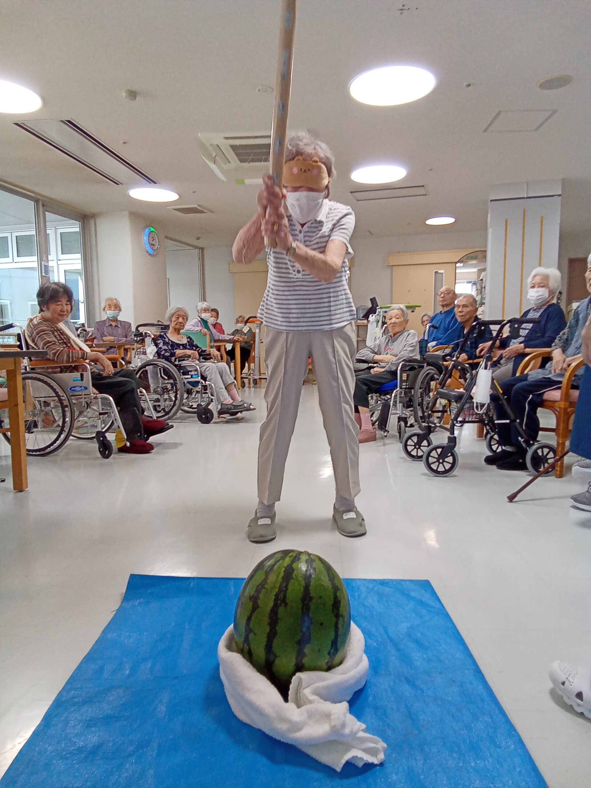 皆さん、大きいスイカに目がけて、力いっぱい棒を振り上げていました(*^^*)