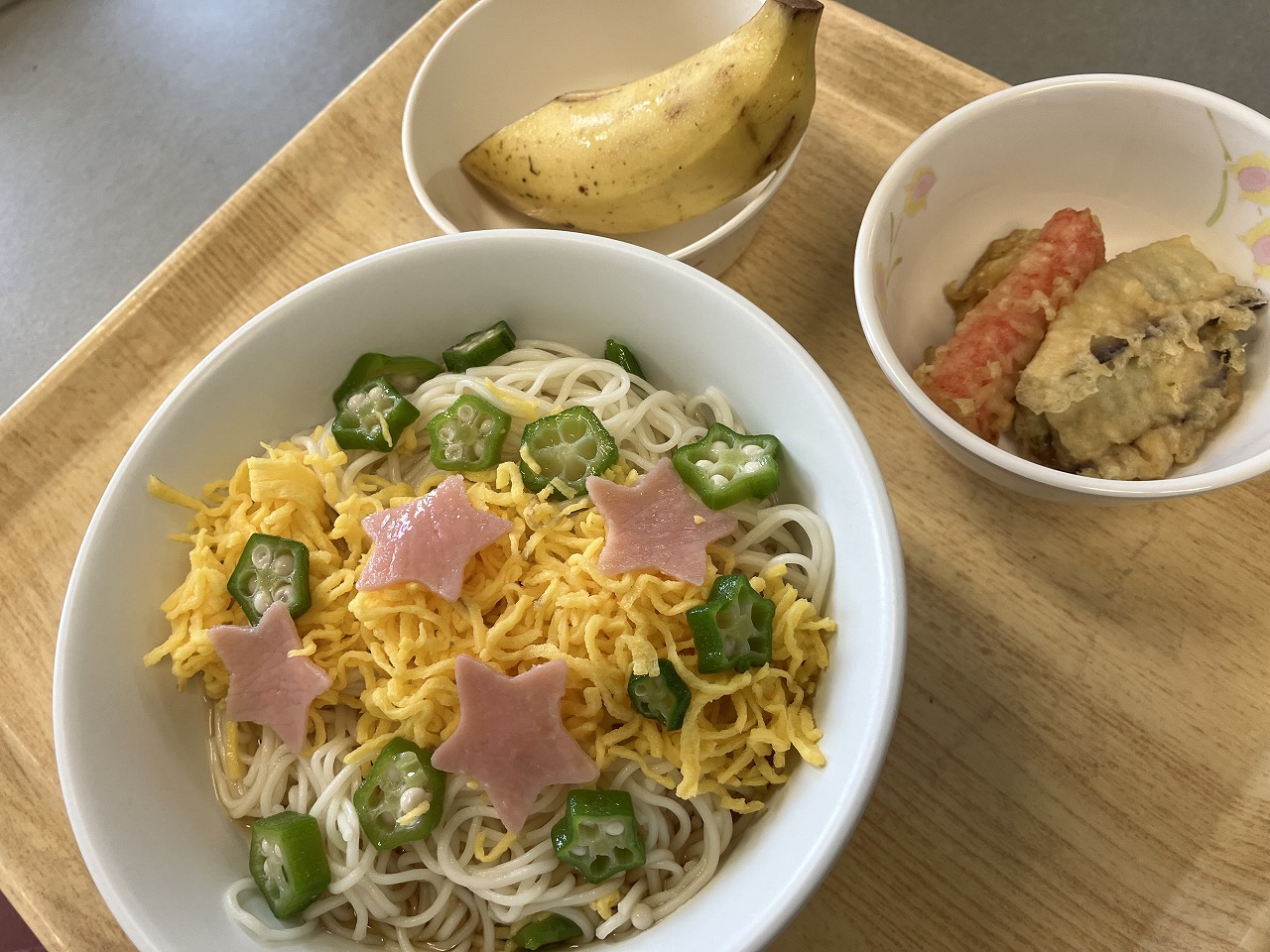 当施設でも、七夕の行事食として、七夕そうめんが昼食に登場!!