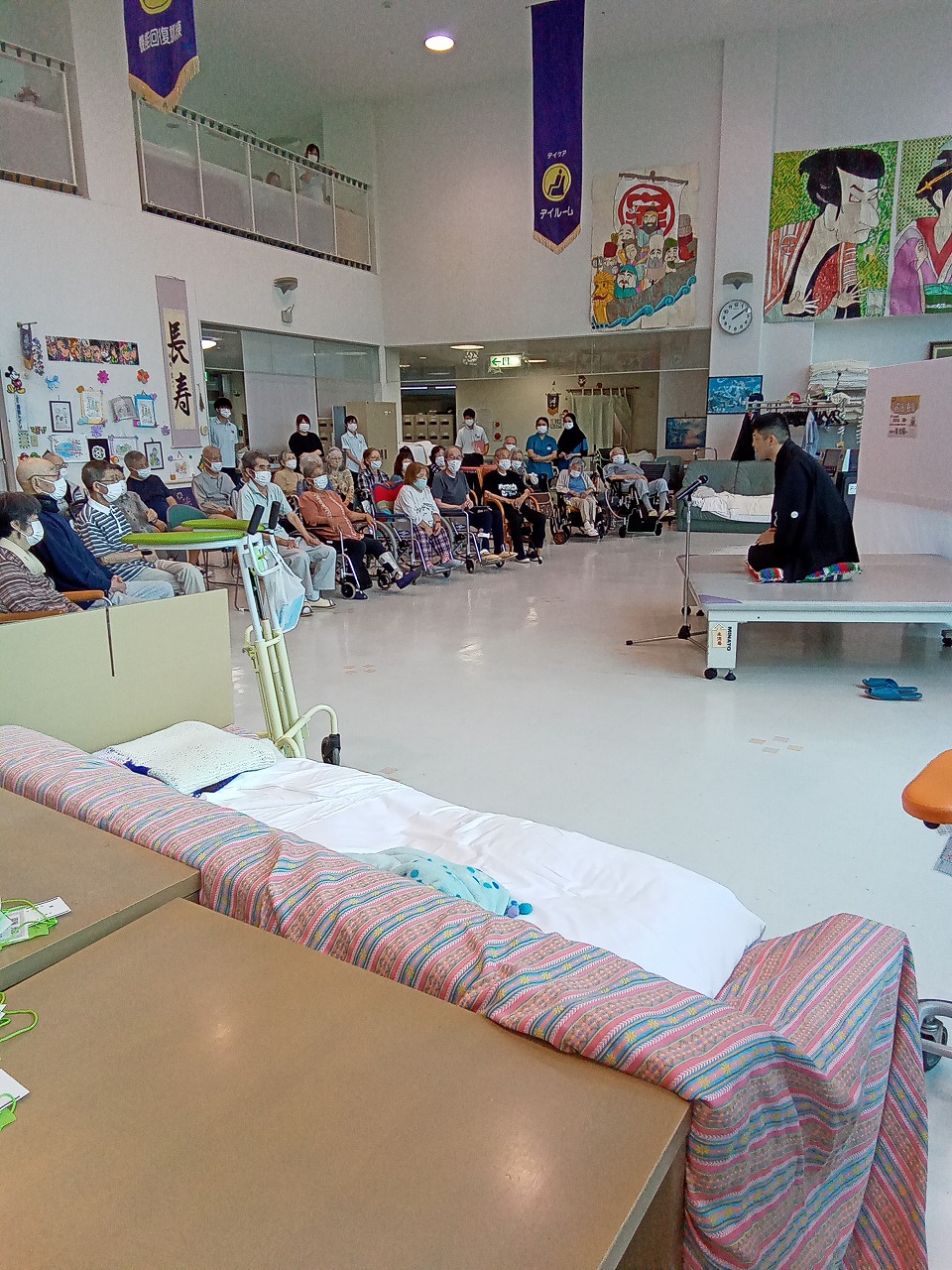 今回のお話は「じゅげむじゅげむ」と、落語に興味ある方であれば聞いたことのあるお話のようで、それだけではなく一発芸もやっていただき、利用者の皆さんも本当に楽しそうで、私も仕事を忘れて楽しませてもらいました。