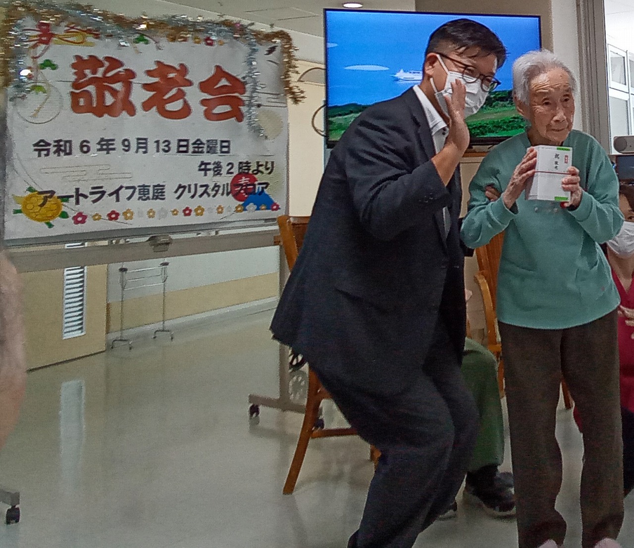 施設全体で40名程が賀の祝いを迎えられ、そのうち100歳以上が5名いらっしゃいます。