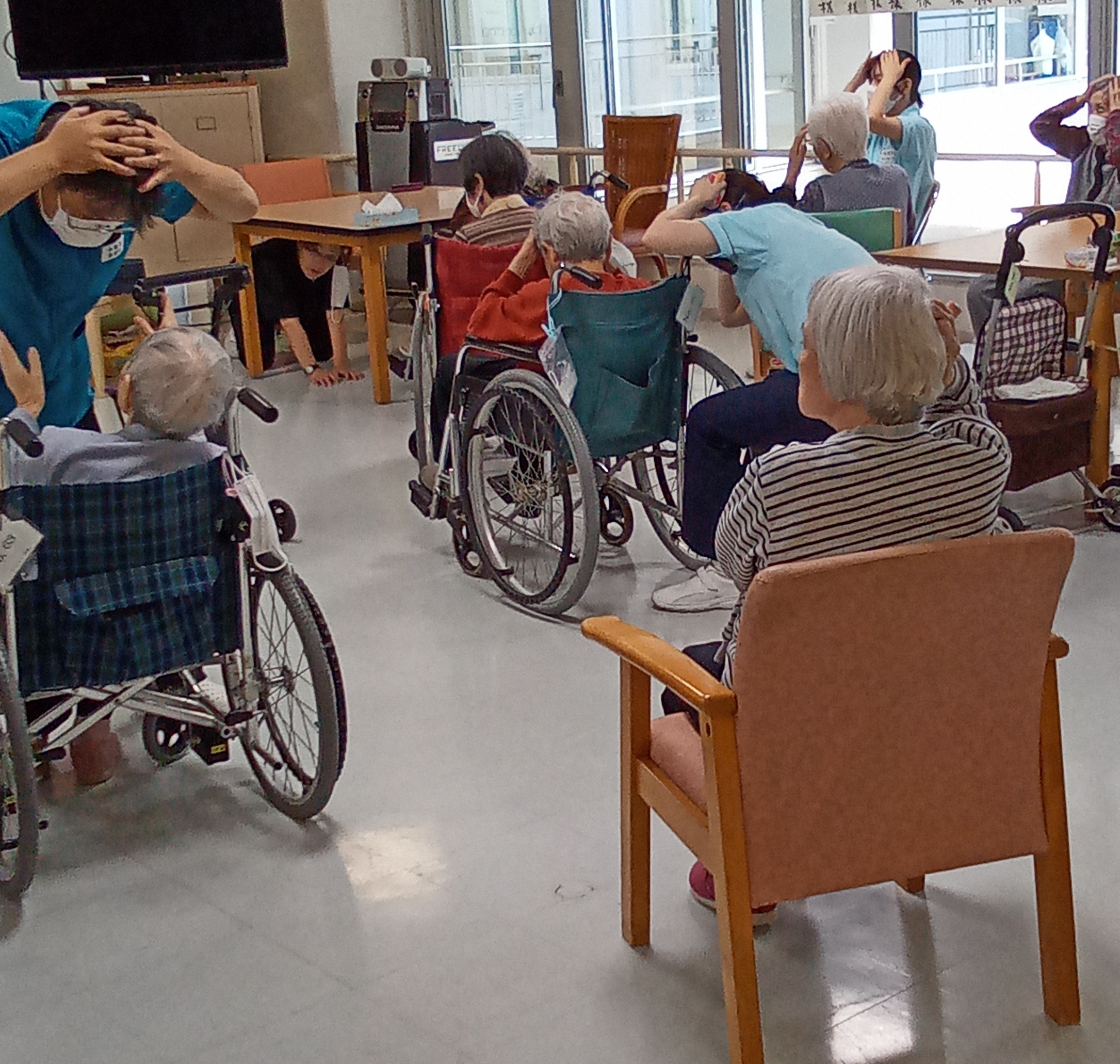 9月6日、施設内に放送を流し、参加可能な職員と利用者様で上記の行動を行いました。