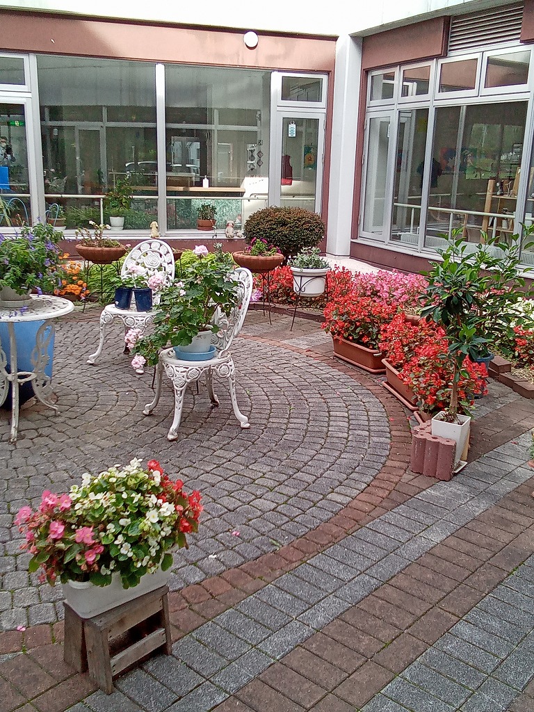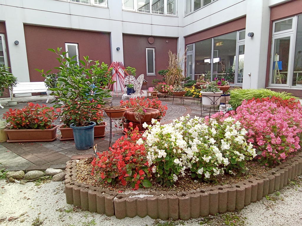 先日のブログでもお伝えしましたが、綺麗に咲いた中庭で敬老の日のお祝いも執り行いました(前回のブログも見てくださいね)。