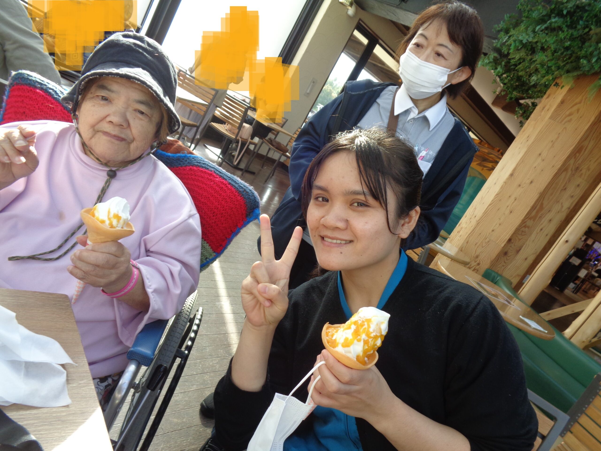 施設に戻り、現地で撮影した写真を 急ぎプリントアウトしてお渡しすると 他の方と見せ合って