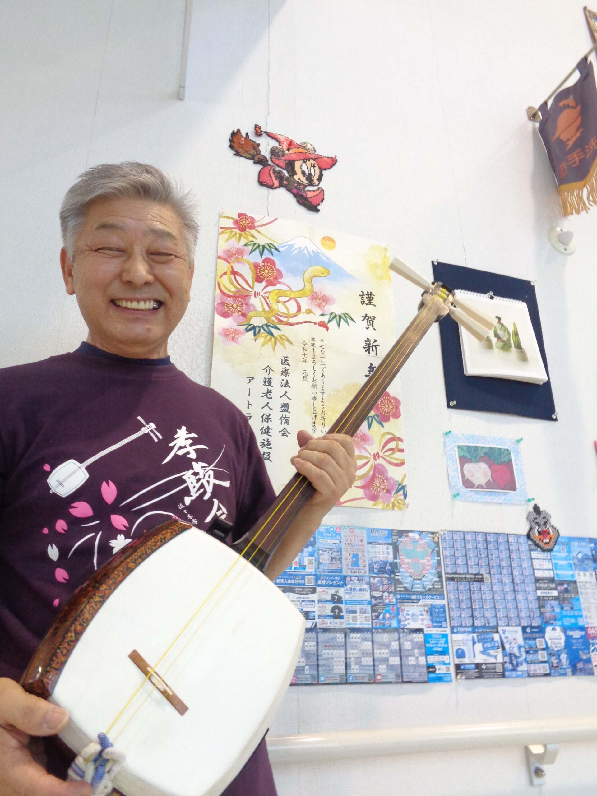 それでは、べんべんべん!!!とフロアに響き渡る弦の音♪当施設での演奏は久しぶりとなります。当法人職員の大橋先生による三味線の単独演奏会をやってくれましたパチパチパチパチ