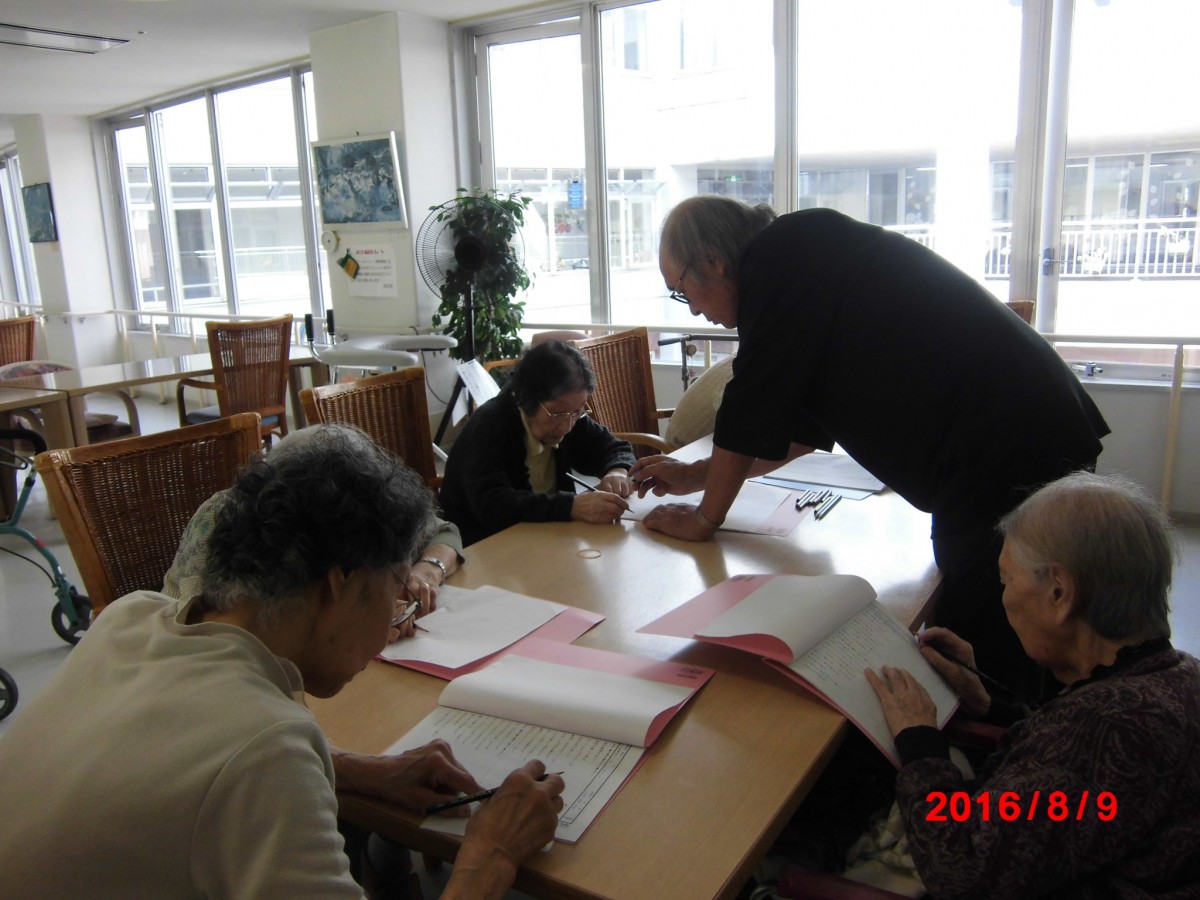 レクボラ(寺小屋)と題したのは、ボランティアさんが入所している利用者さんの講師となり、ドリルや漢字などを学ぶ時間を設けました。