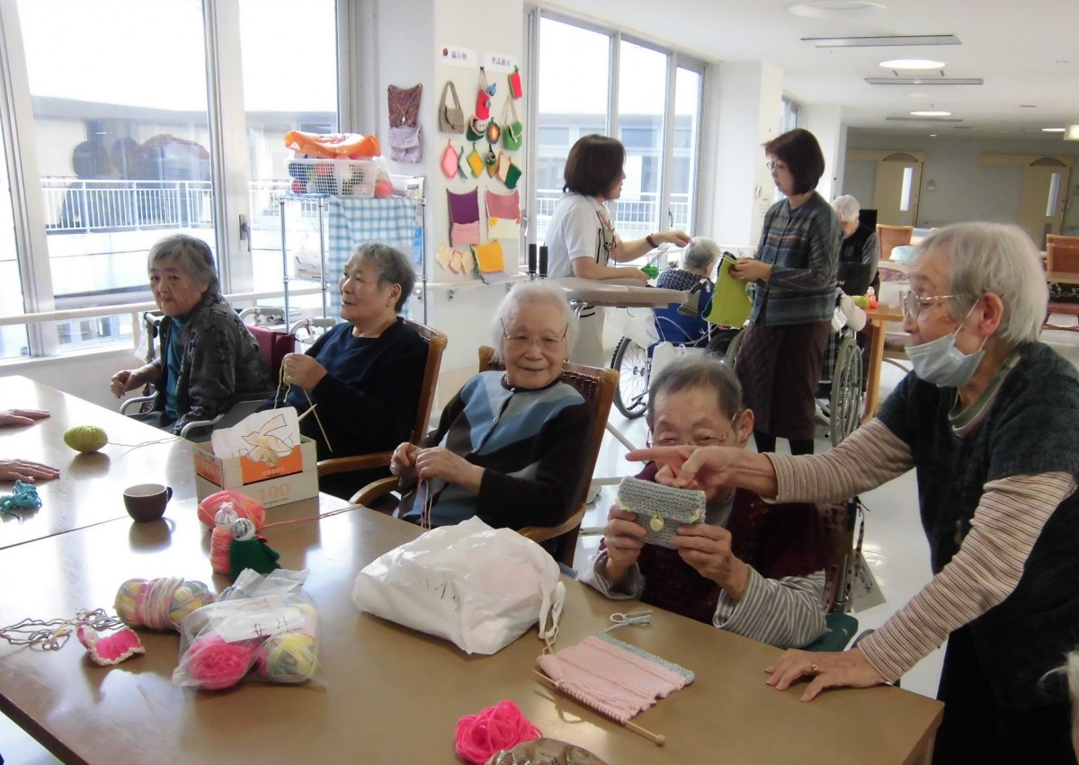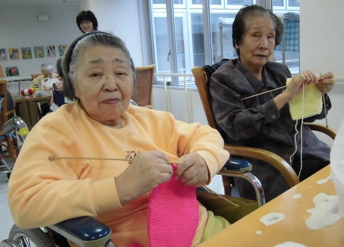 編み物ボランティアをする事になったのは、義母がアートライフ恵庭に入所し、日常生活の中で進んでできる事は何かしらと、中村看護部長と考えていました。そこで、家で靴下を編んでいた姿を思い出し、編み物をしてみましょうと言う事になりました。