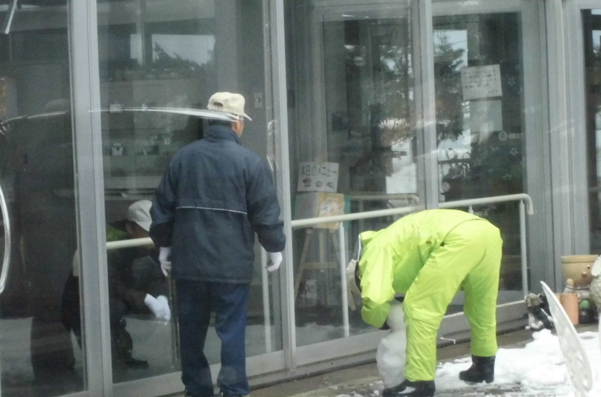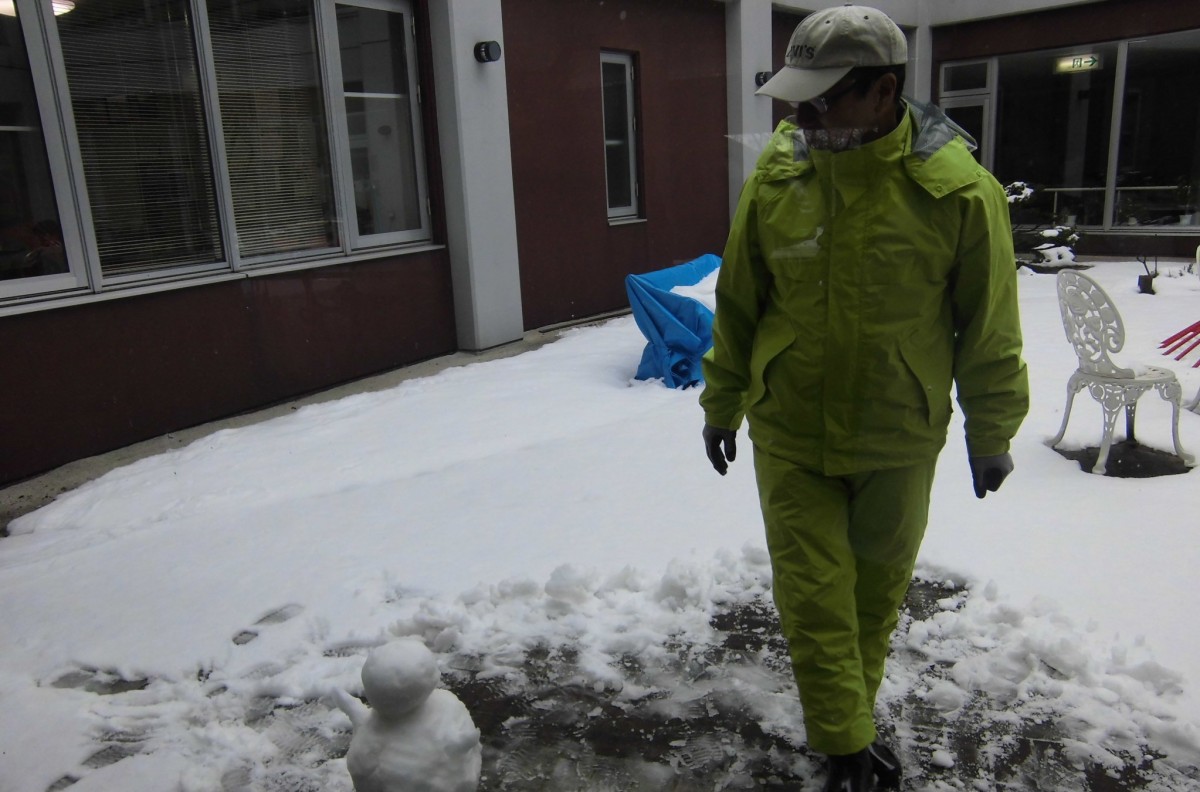 今日は、ある雪の降った朝に施設管理のおじさま方が、何やら中庭で行っていた様子をこっそりと写真に収めておりましたので、ご紹介します。