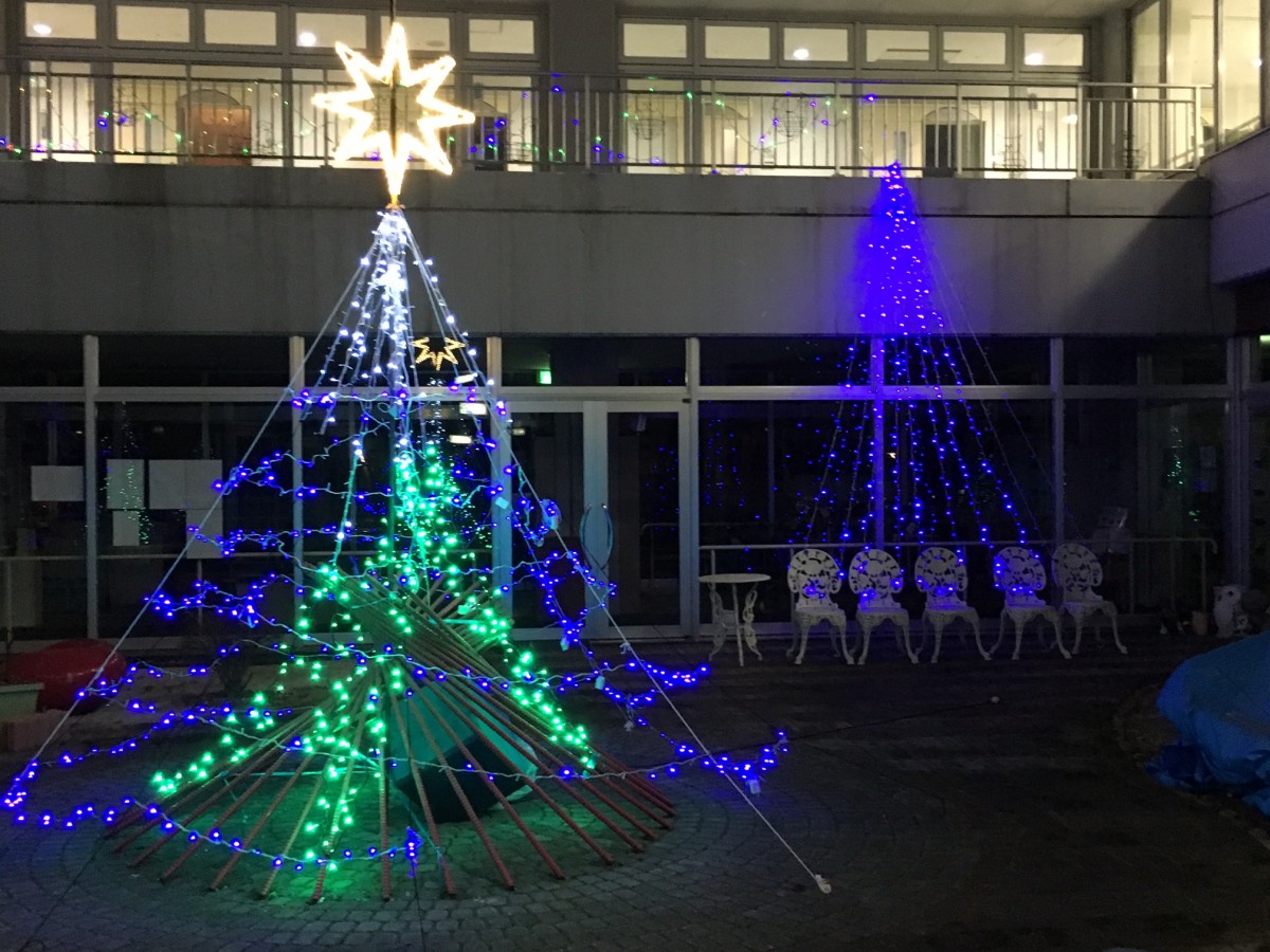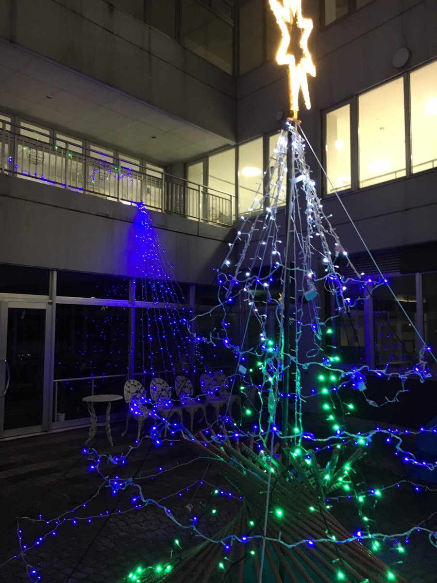 ところで今年は、電球の数を昨年より増やし全部で約2100球の電飾で中庭を彩ることができました。札幌ホワイトイルミネーションに負けないくらい(笑)のイルミネーションを、皆様ぜひお越しの際はご観賞してください。