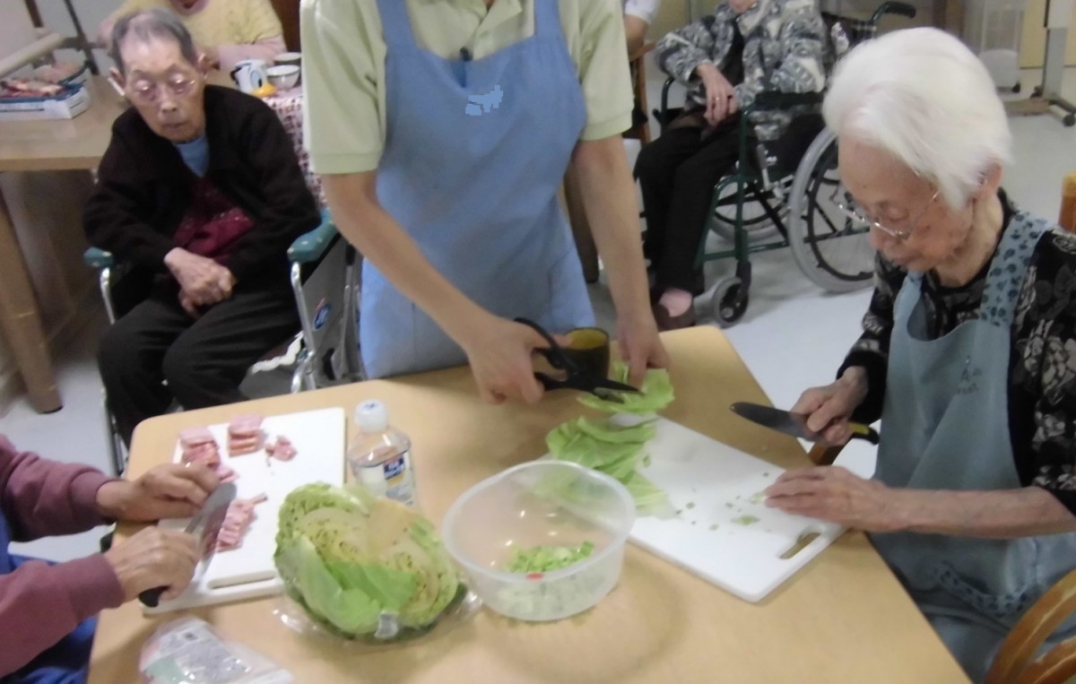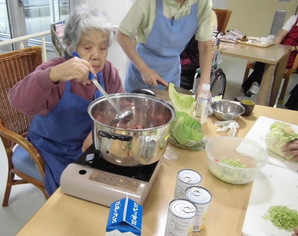 この間、レクリエーションの一環で「スープ作り」をしていた写真が掲示されていましたので、皆さんにご紹介しますね(^^♪