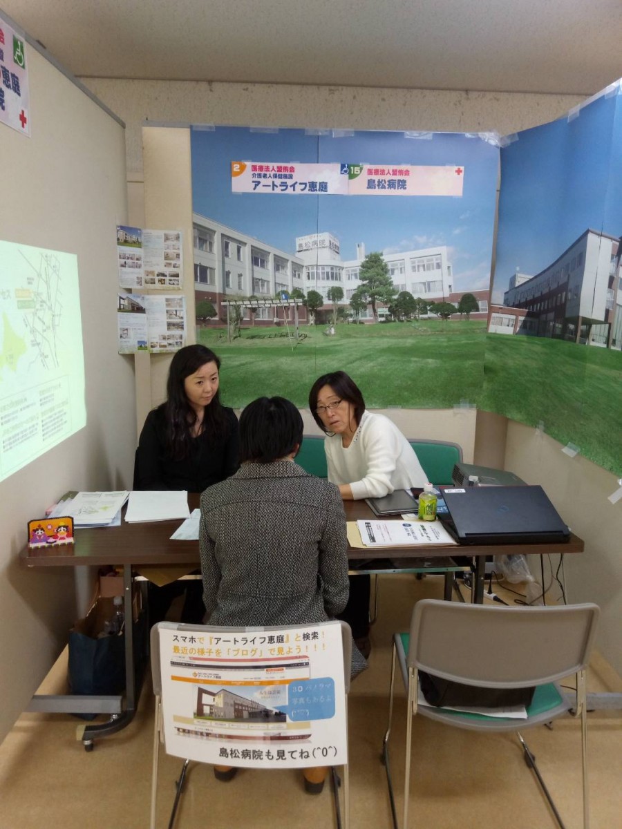 今回、私たちは法人として、ブースを申し込みましたので「島松病院」と「介護老人保健施設アートライフ恵庭」の職員募集をさせていただきました。