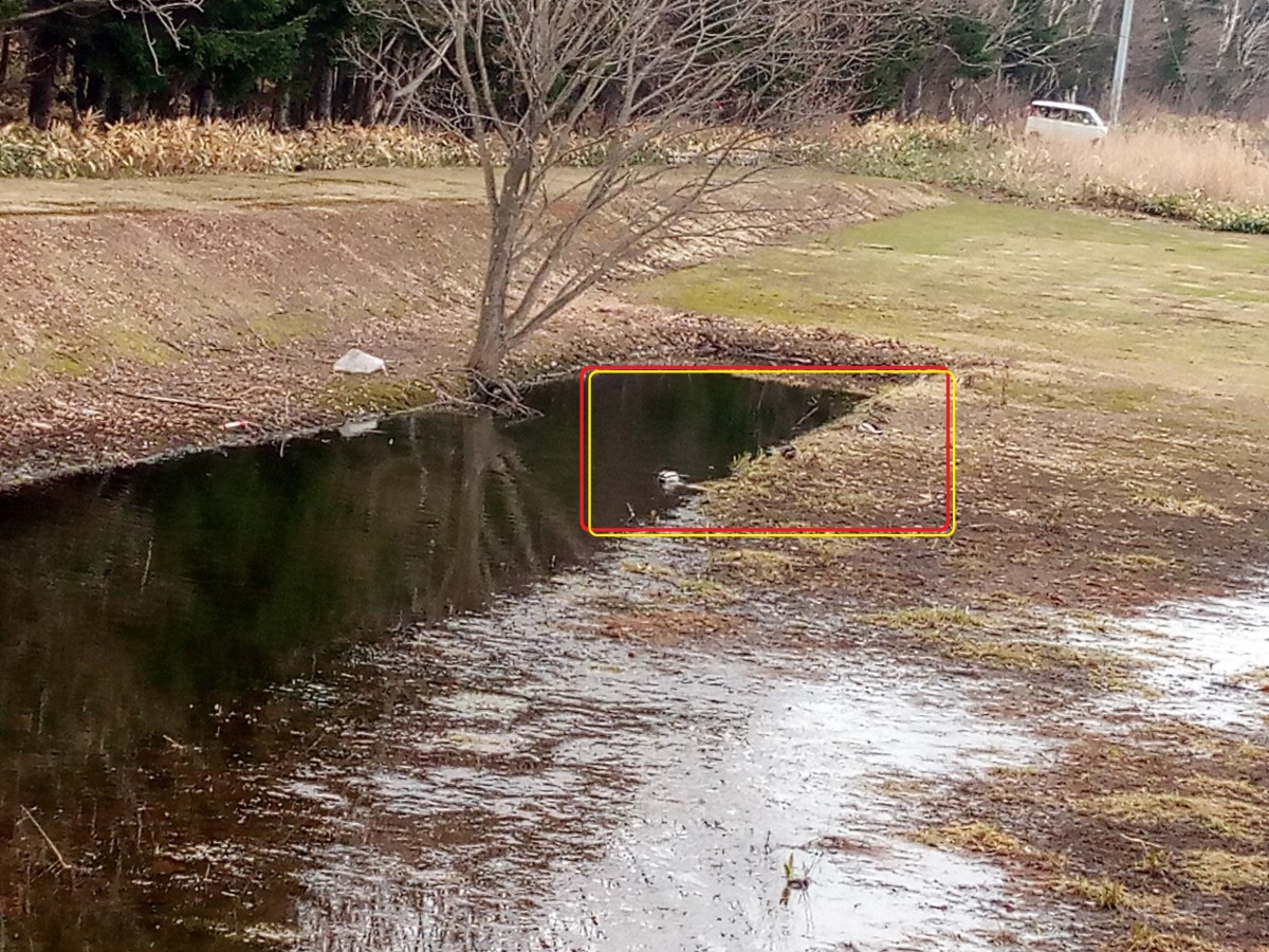 そんな中、当法人のパークゴルフ場『すずらん広場』の片隅に毎年できる大きな水たまり。そこに、これまた毎年恒例の渡り鳥のカモが、飛来しています。Ipadでの撮影なので、望遠に限界がありますが、頑張って近づいてもこんなもんです(T_T)。