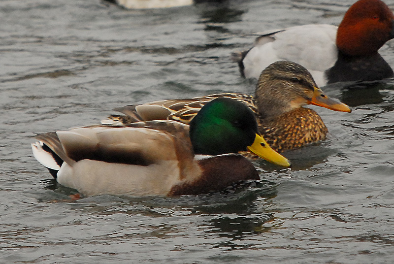 マガモのオスは頭部が鮮やかなメタリックグリーンなのですぐにわかりますが、メスの方は地味なので、カルガモと混ざっていると、どれがマガモでどれがカルガモなのかわからなくなってしまいます。