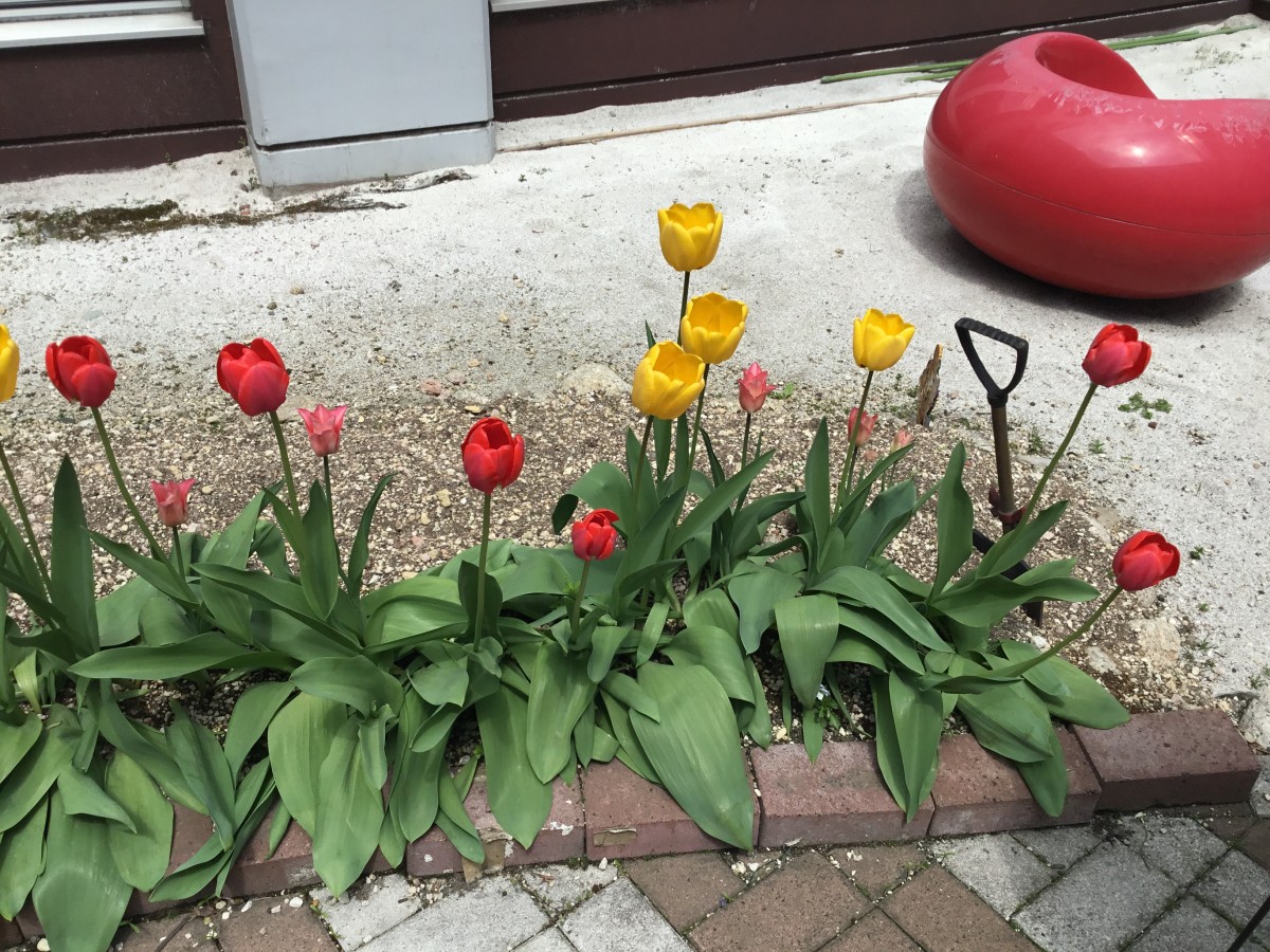 当施設の中庭に咲いているチューリップ。今年は少し、成長過程を撮影できましたので、ご報告いたします。