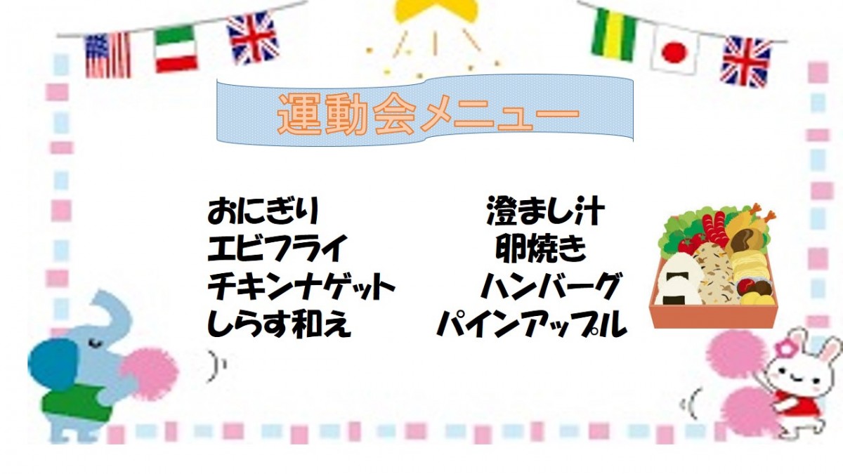 皆さん、こんにちは。ブログ部長でございます? さて、本日の話題は、運動会シーズンにちなんだメニューをご紹介いたします。それでは、管理栄養士さんお願いいたします。