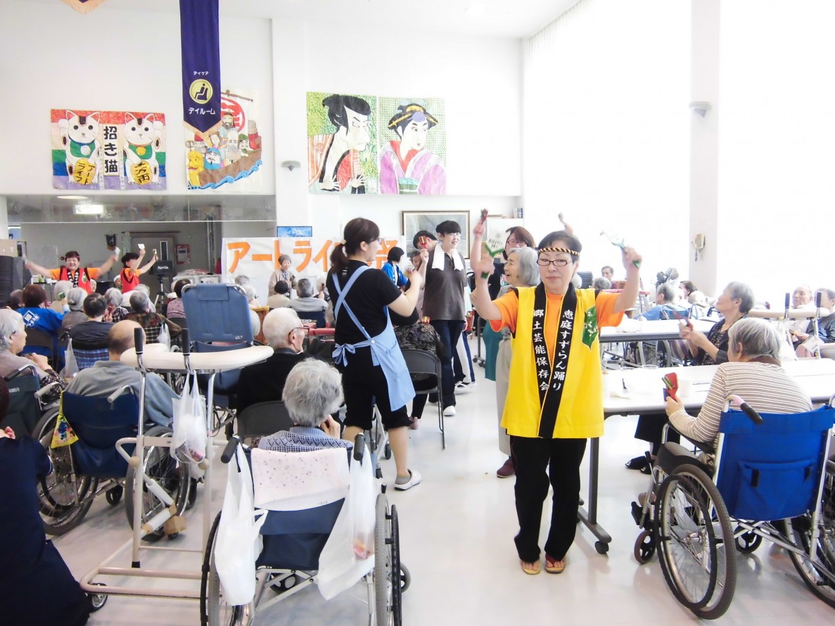 夏といえば、祭りですね(*^_^*) アートライフでは今回、焼き鳥、フライドポテトとウインナー、わたあめ、ジュースなどの飲食物の他にも、輪投げやスクラッチくじ、地域のボランティアの方々によるすずらん踊りと盛り沢山な内容で、利用者の方々も非常に楽しい1日を過ごすことができたのではないでしょうか?(*´ω`*)