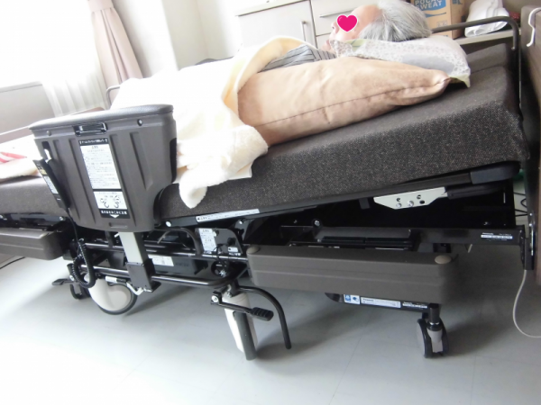 介護ロボット「リショーネPius(プラス)」を認知症専門棟で試用して1ヶ月が過ぎましたので、ご紹介します。まずは、離床アシストロボット「リショーネPius」はどういうロボットか説明します。一言で言うと、臥床時はベットのまま、起きるときには車椅子に変身する優れもののベットです。