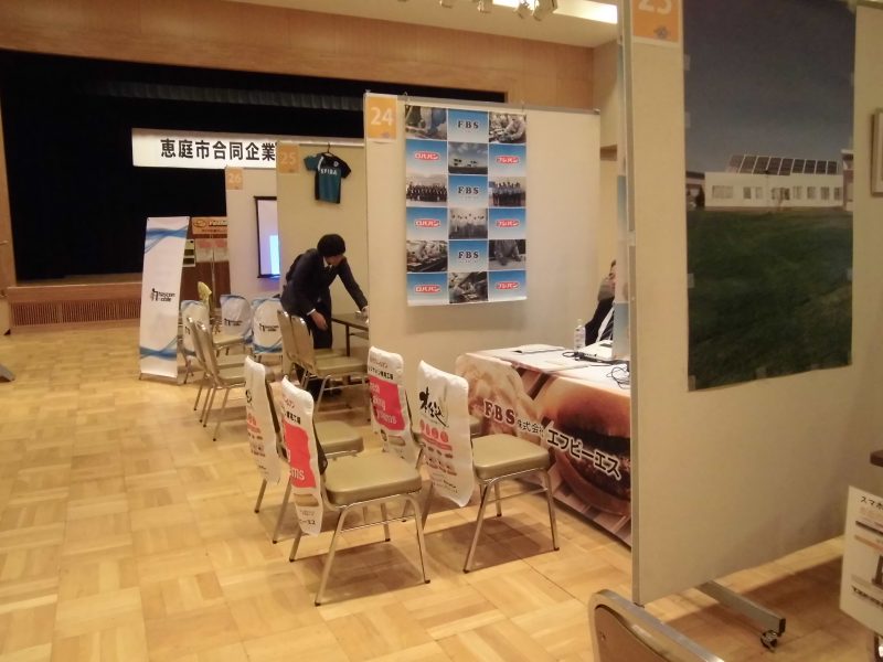 先週の10月6日(土)に恵庭市民会館にて36社の企業が集まりそれぞれのブースの準備を始めました。