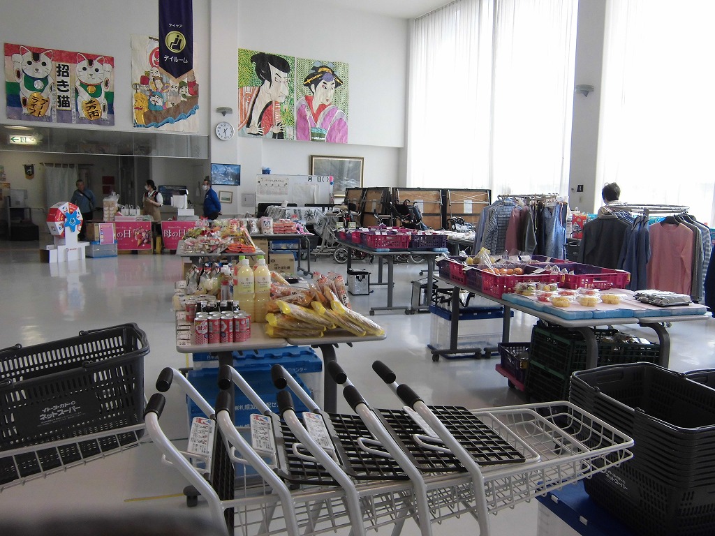 さて今回は、当施設で年に2回行われております、イトーヨーカドー恵庭店様による「ふれあいショッピング」についてご紹介いたします。4月19日(金)に開催されましたこちらの催し、食品はもとより日用品や衣料品など、たくさんの商品をご用意いただいており、当施設内はさながら「イトーヨーカドー恵庭店 アートライフ恵庭出張所」となっておりました(笑)。