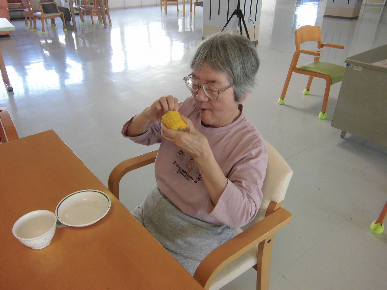 夏の野菜の代表格と言えばとうもろこしですね!当施設でも毎年この時期におやつに茹でとうもろこしを提供しています。茹でたてのとうもろこしは、つやつやと黄色くて、甘い香りに食欲がそそられます。美味しそうに召し上がる姿は、皆さんとても幸せそうで、旬を味わうことの大切さを改めて感じました。