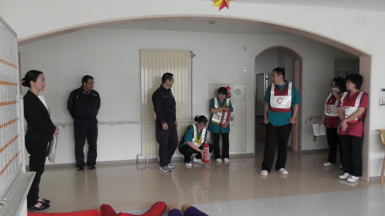 訓練に参加した職員は応援要請を受けた後、消火器を持参して火元へ向かうといった内容でしたが、当施設はファミリア病棟から一番離れていますので駆けつけるのも一苦労でした……。とは言え、実際に火災が発生した時には一秒でも早く向かわなければならないので「遠い」なんて思う余裕もないと思います。
