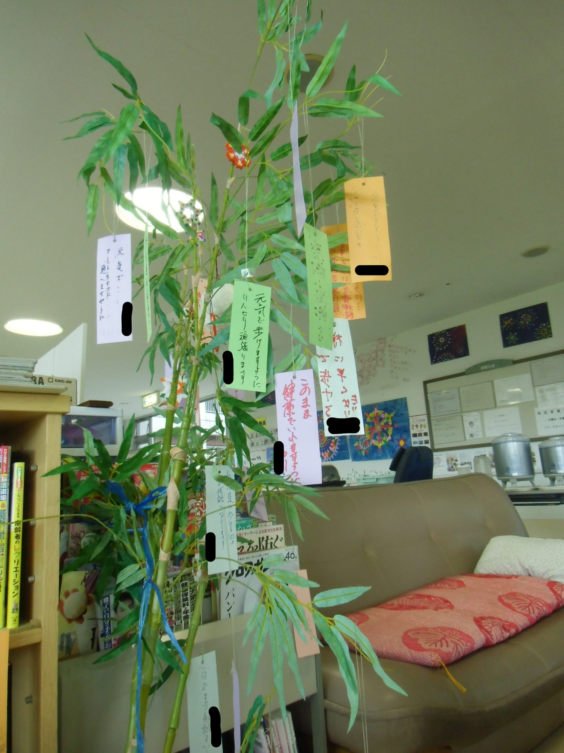 通所リハビリをご利用されている皆様に、思い思いの願いを短冊に込めていただきました。