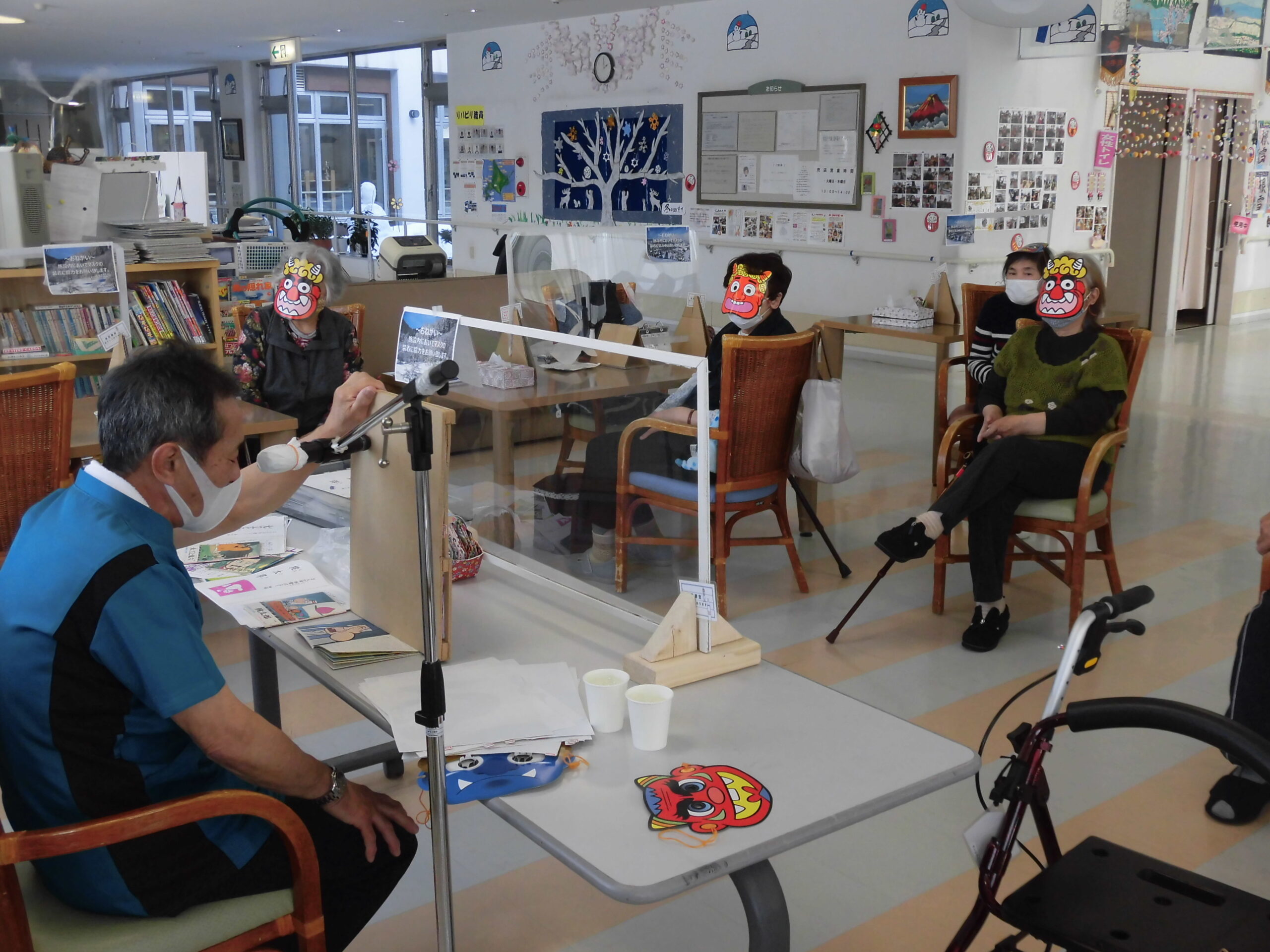 今年はコロナ感染対策で豆まきは出来ませんでしたが、少しでも節分の雰囲気を味わって頂きたく 年男の職員が鬼にまつわる紙芝居(桃太郎・こぶとり爺さん・大工と鬼六・羅生門の鬼)を披露し