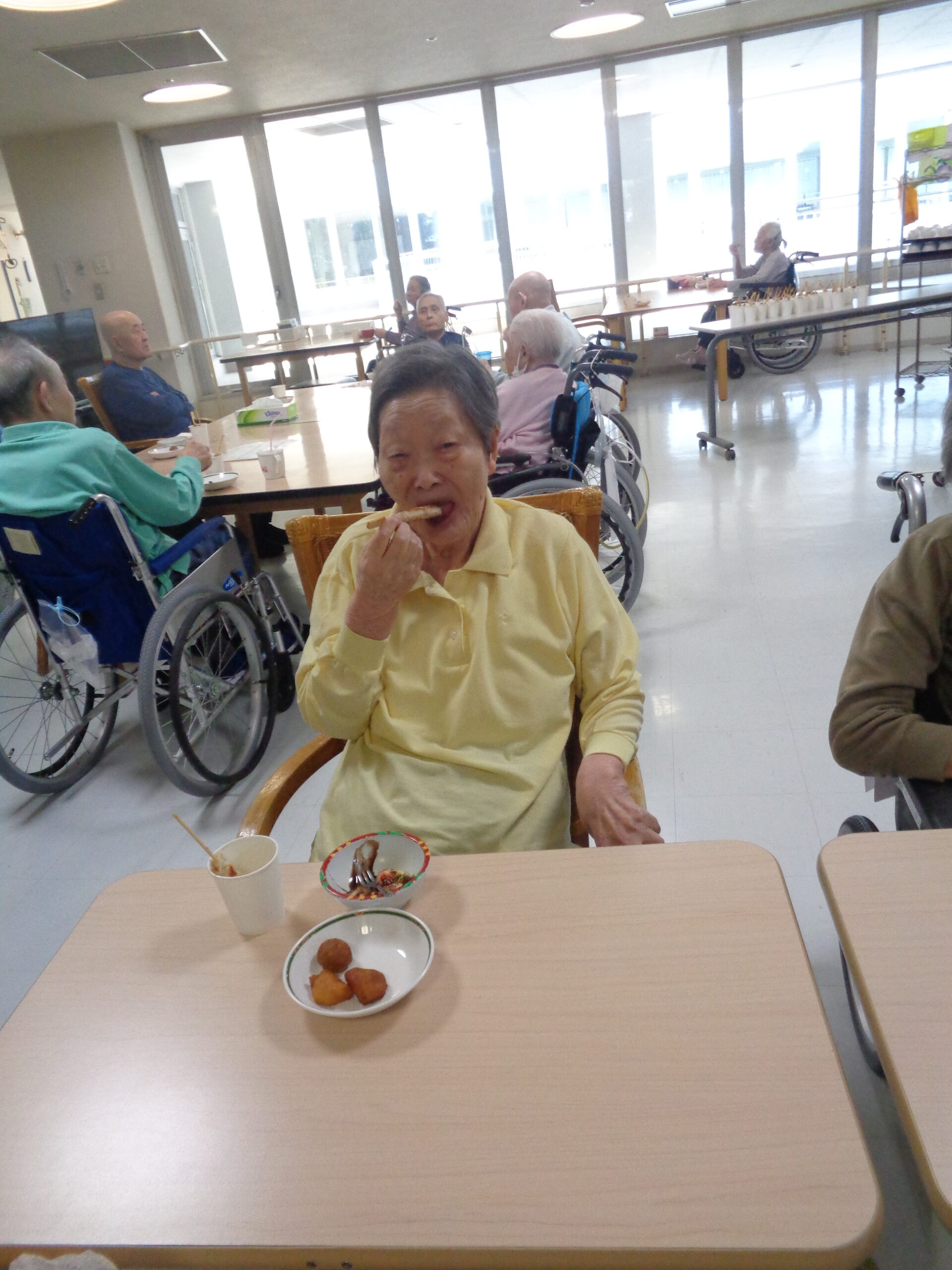間食にアメリカンドック・揚げ芋・チョコバナナが提供され、皆さん笑顔で食されておりました(*‘∀‘)