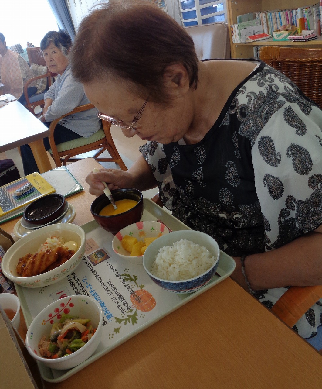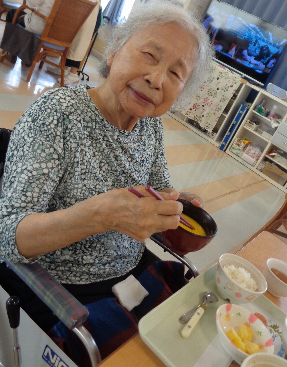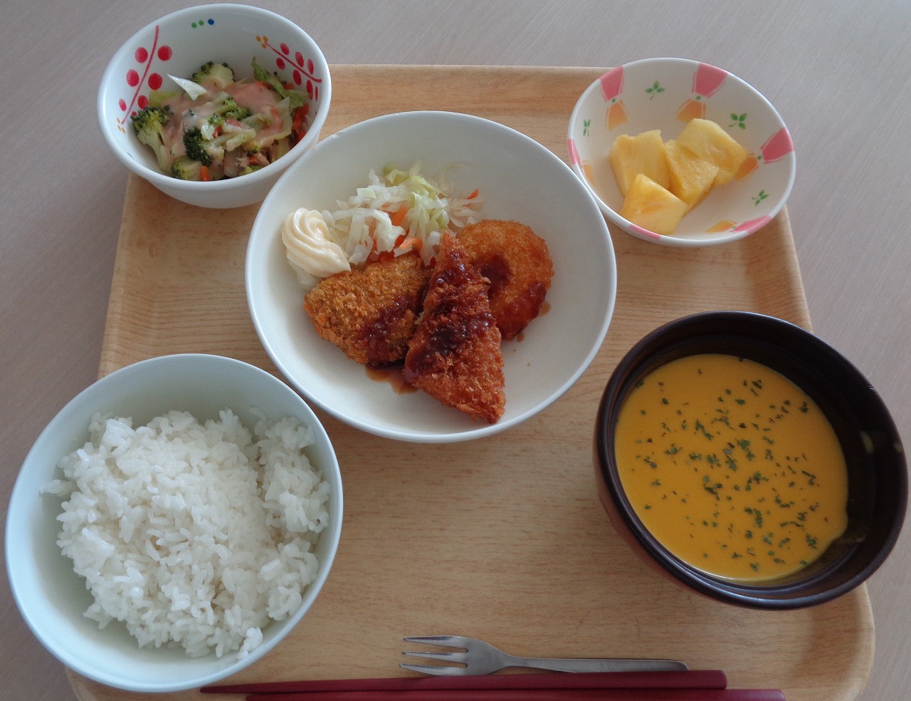 この度、恵庭市商工会議所様のご厚意により、恵庭市の特産である「えびすかぼちゃ」を使ったスープを頂き、26日(月)お昼の食事と共に頂きました。