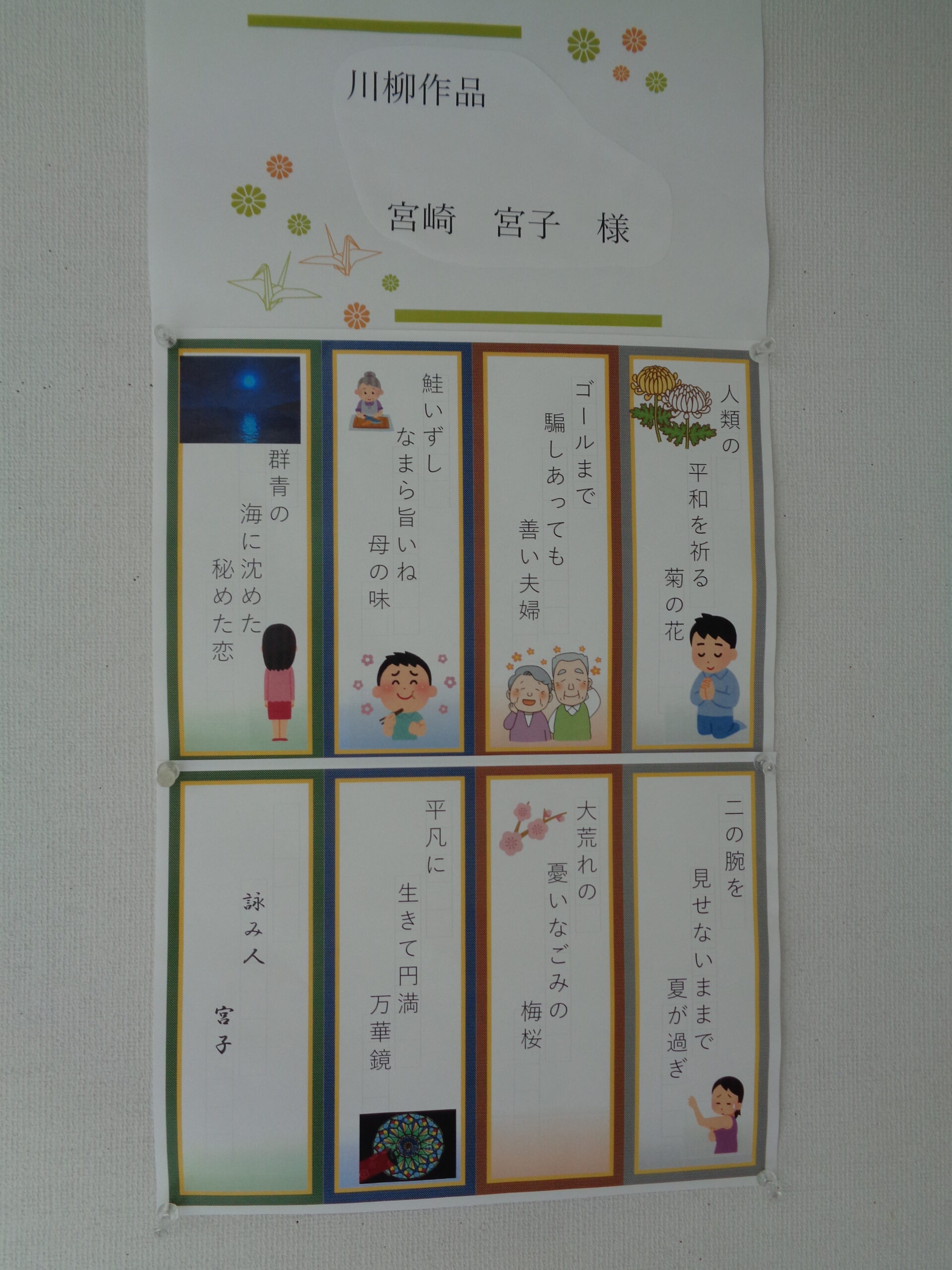 今回は、五七五の短い詩でクスっと笑わせたり、しみじみとさせたり、そんな川柳を嗜まれる宮子さん(通所サービスご利用)と、その作品をご紹介させていただきます。