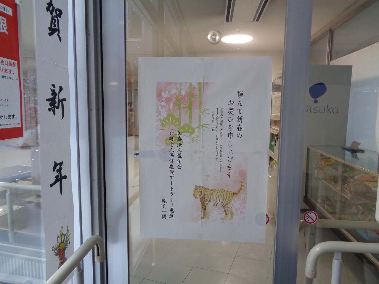 最近では、また新しく変異株の流行の話も出ています。いつどのようなときにどのような状態になるか、未だに予想も付きませんが、当施設としましては、毎日の感染対策と利用者様の健康管理を今年も徹底し、恐れることなく一日一日を大切に過ごして行くことに変わりありません。皆様の日常が今年こそは、少しでも改善することを祈願して新年の挨拶と代えさせていただきます。今年も職員一同どうぞよろしくお願い申し上げます。