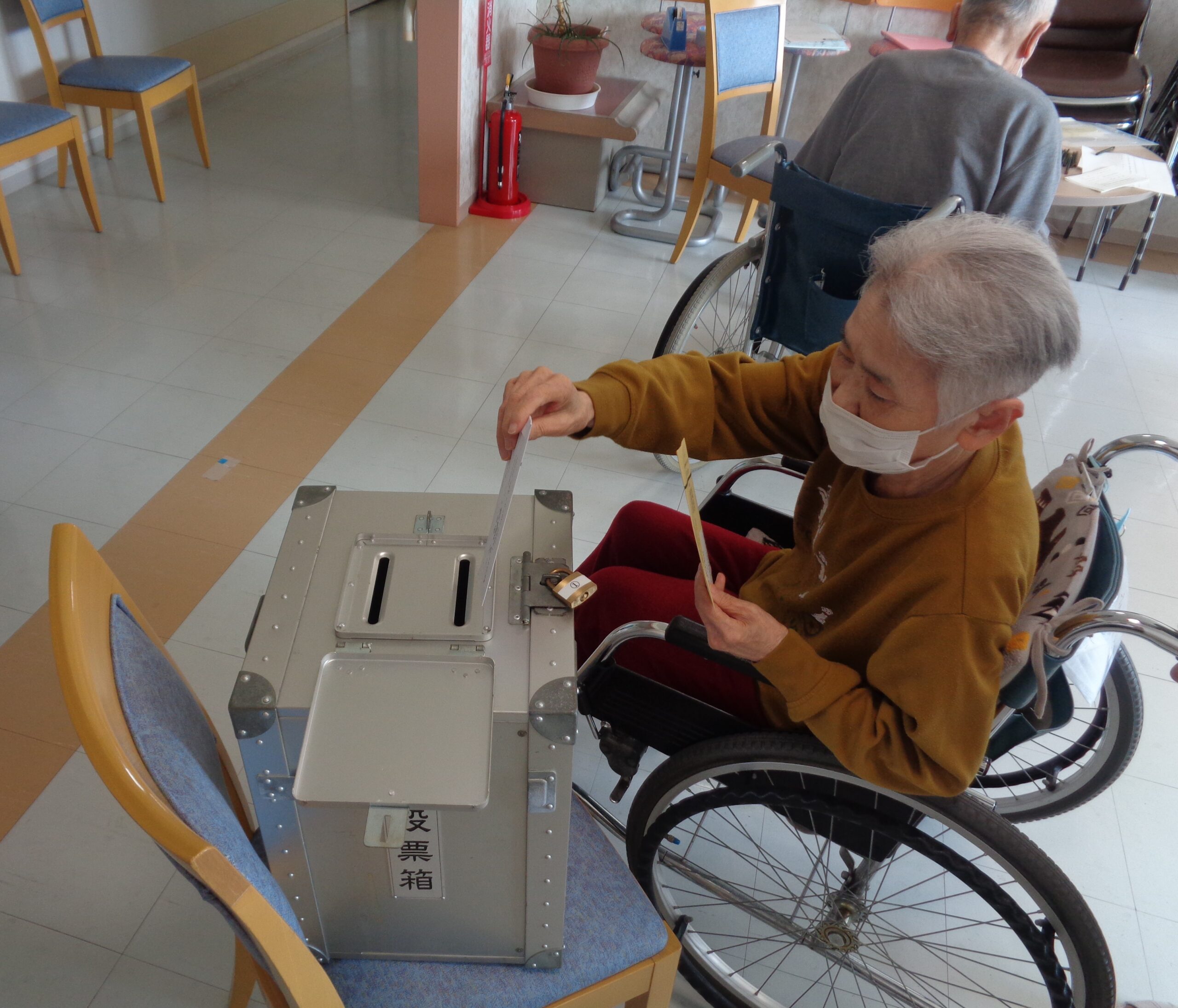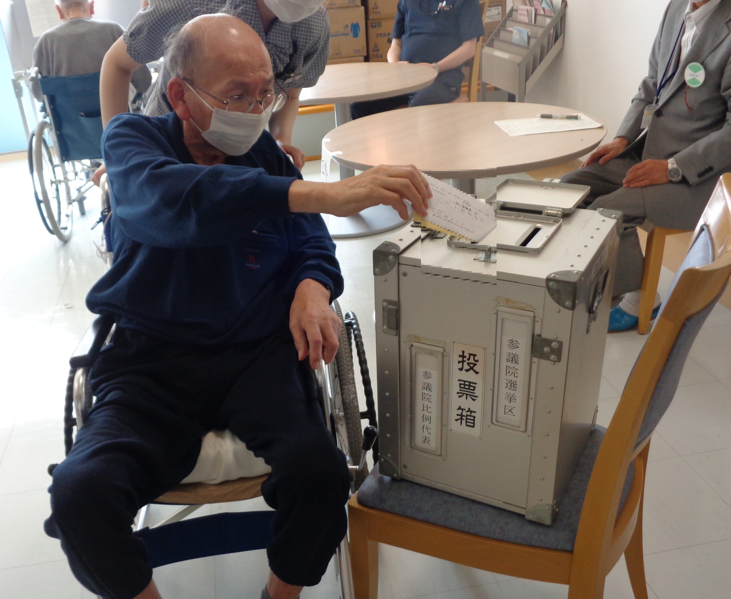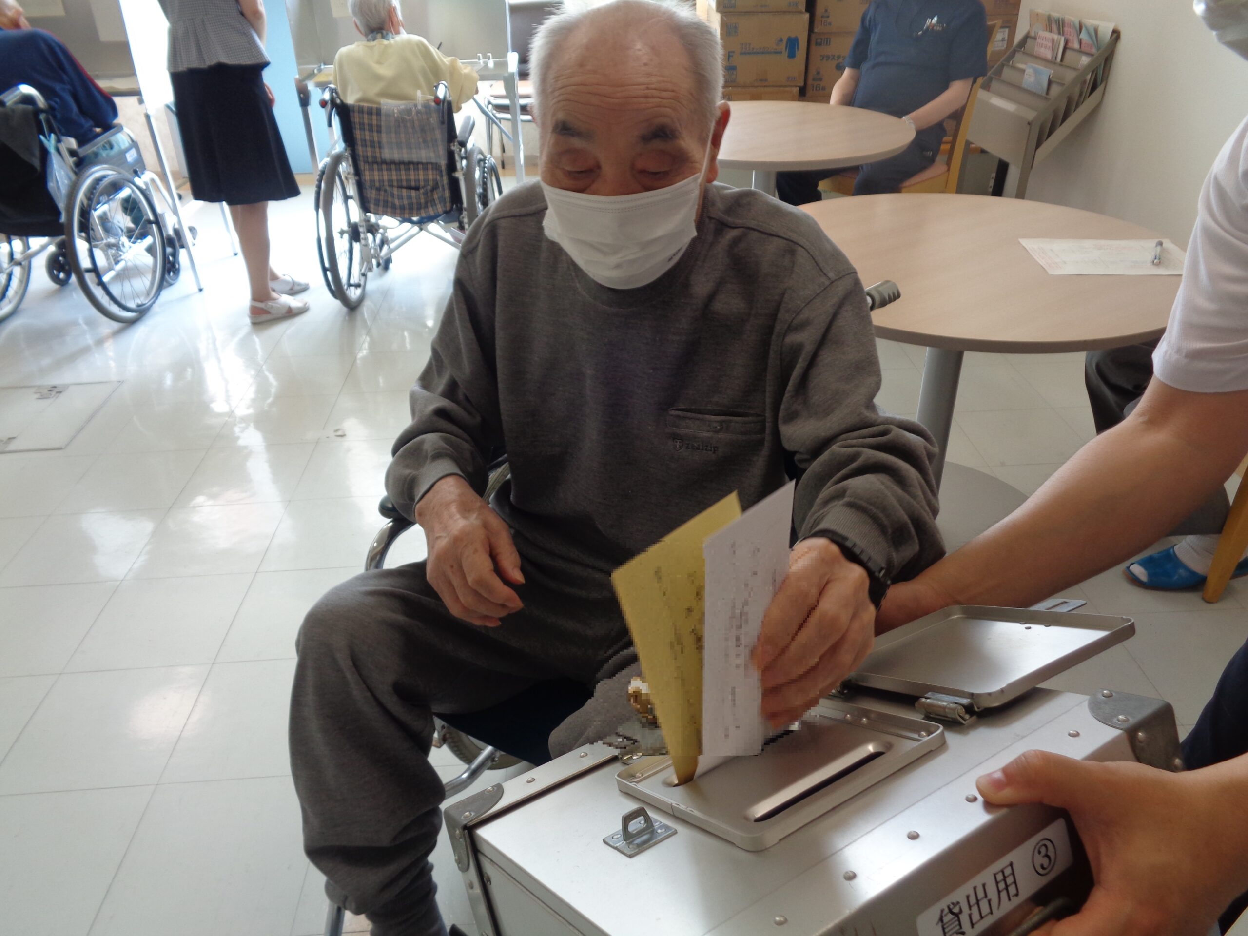 先月、7月5日に第26回参議院議員通常選挙の不在者投票を施設で行いました。